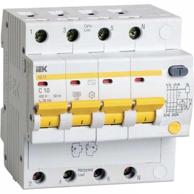 Дифференциальный автоматический выключатель IEK АД14 4Р 10А 30мА - MAD10-4-010-C-030