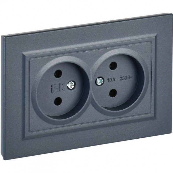 Розетка IEK BRITE РС12-2-БрМ 10А без заземляющего контакта и шторок, маренго BR-R20-10-K35-F