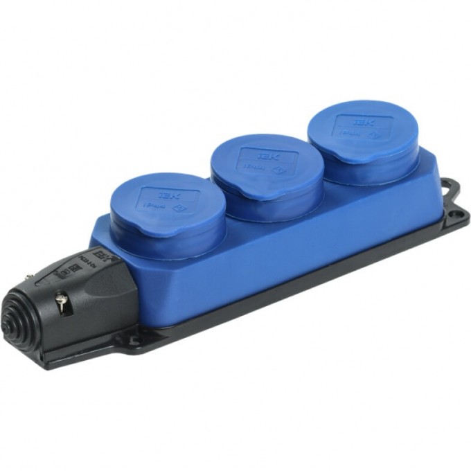 Розетка (колодка) IEK 3-местная РБ33-1-0м с защитными крышками IP44 ОМЕГА синяя - PKR61-016-2-K07