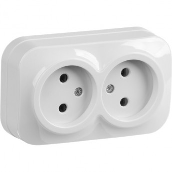 Розетка двухместная для открытой установки IEK GLORY РС22-2-ХБ без заземления 10А белый - ERH20-K01-10